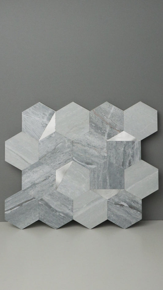 WJR-570 Luxus+++: luxuriöse und selbstklebende Küchenrückwand (Grau-Mamor Silber, 27cm x27cm x3.3mm) neues Modell 2025